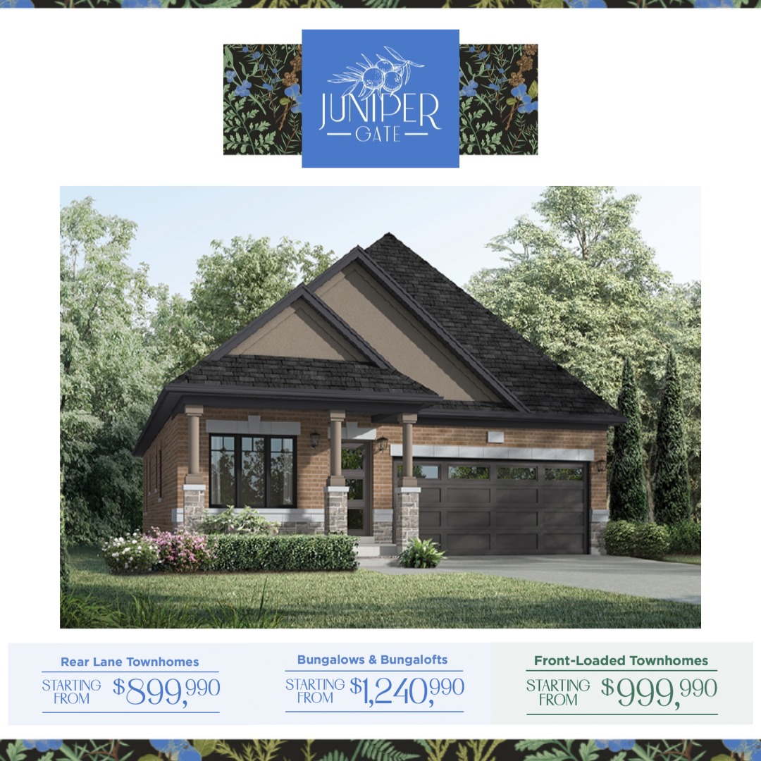 Coming soon to Georgetown: Juniper Gate, an active living community of bungalows, bungalow lofts and townhomes at Hartwell Road and No. 10 Side Road.